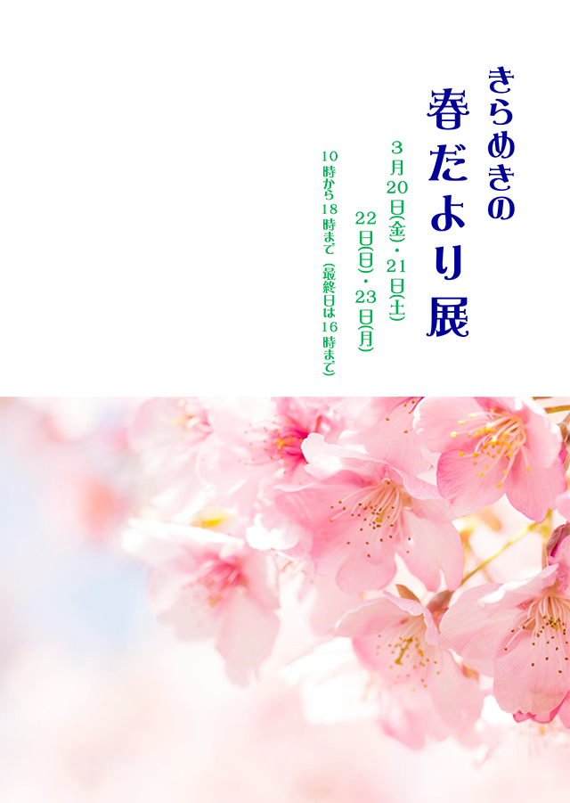 3月展示会『きらめきの春だより展』 2026年2月24日 最終更新日時 : 2026年2月17日 nunoya029 会期2026年3月20日(金)~23日(月)の4日間 10時~18時(最終日は16時まで)